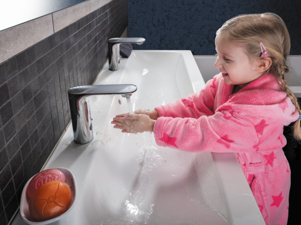 Automatic washbasin taps with soap dispenser is an ideal pair for non-contact hygiene.