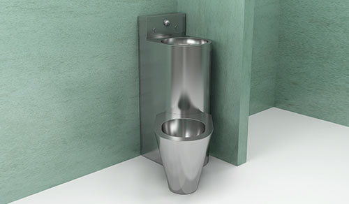 Vandalizmusálló piezo sarok kombinált egység, jobb oldali álló WC-vel