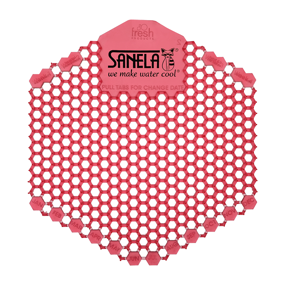 Műanyag piszoár szűrő piros színben - kiwi és grapefruit illattal