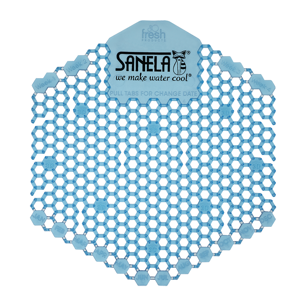 Műanyag piszoár szűrő kék színben - pamutvirág illattal