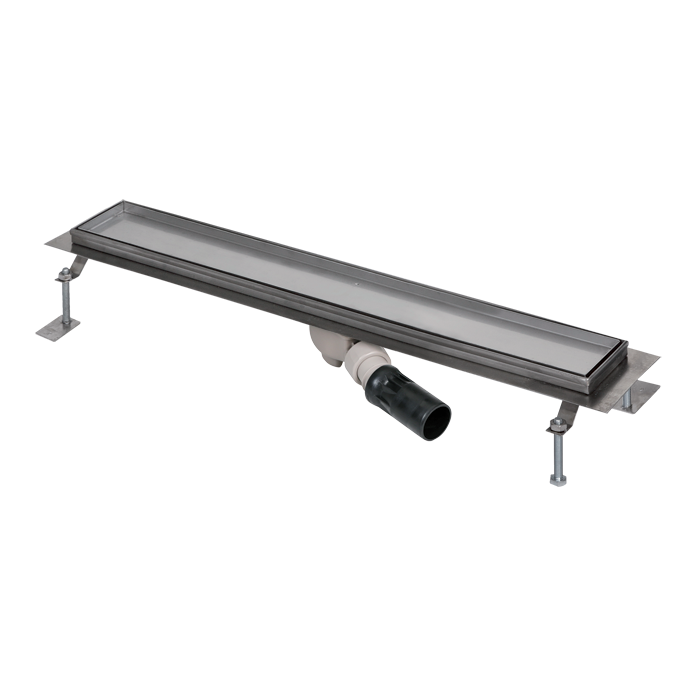 Fürdőszobai padlóösszefolyó csempébe illeszthető, nyitott térben, 850 mm hosszú