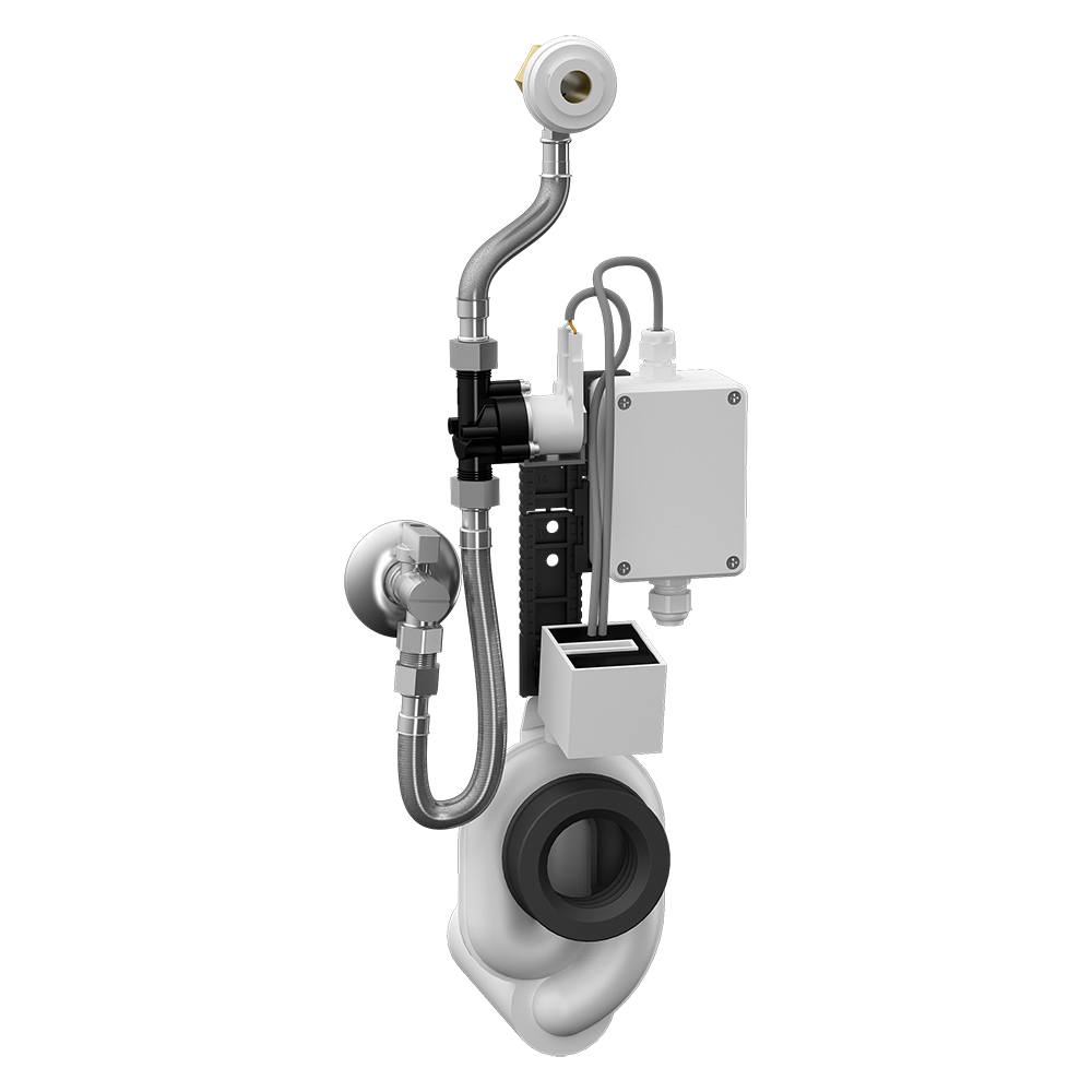 SLP 07Z - Cikkszám: 01071 - radaros öblítőegység Bluetooth modullal a szerelősínen, mágnesszelep, csatlakozó tömlők, szűrővel és visszacsapó szeleppel ellátott sarokszelep, gumitömítéses bemeneti csatlakozó, szifon, papír fúrási sablon, tápegység