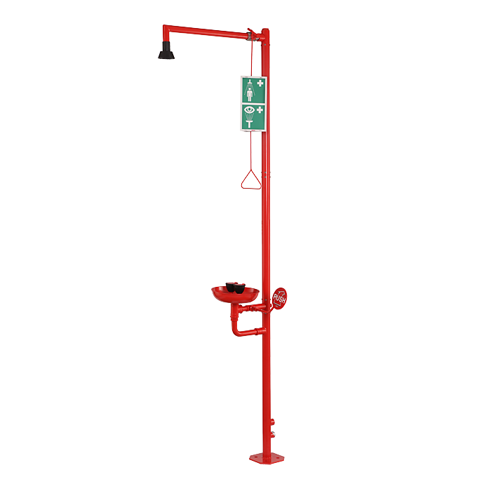 - szabadon álló test- és szemzuhany - testzuhany indító karral és öntisztító zuhanyfejjel, szemzuhany két szórófejjel, tálkával és indító karral