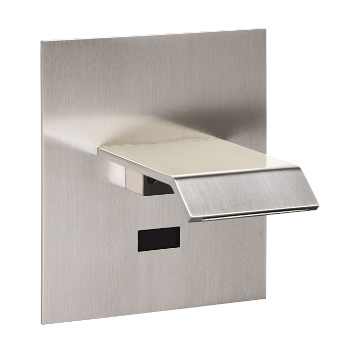 Wall-mounted tap for cold and hot water, brushed finish, 24V DC