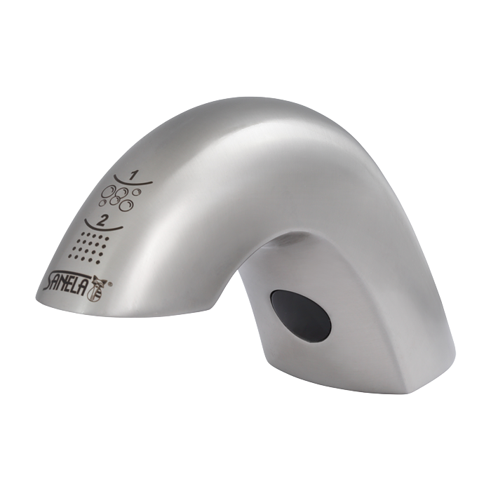 SLU 46MD - Cikkszám: 03467 - csaptelep elektronikával, Y-ág, bekötőcsövek, elektromágneses szelep (1 db), perisztaltikus szappanadagoló szivattyú és 1 l folyékony szappan tartály, SLZ 07 - fali tápegység 230 V AC/24 V DC