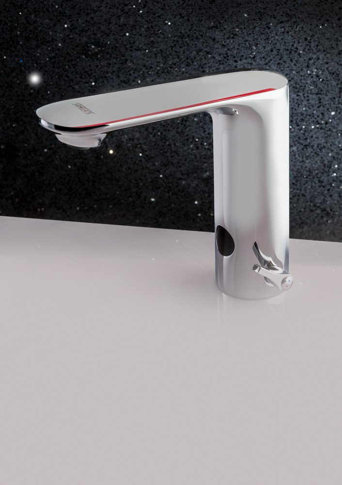 - a vízfolyás megszűnik, miután a kezek eltávolításra kerülnek az érzékelő aktív tartományából, állítható időzítéssel (0,25 – 7,75 tartományban állítható)