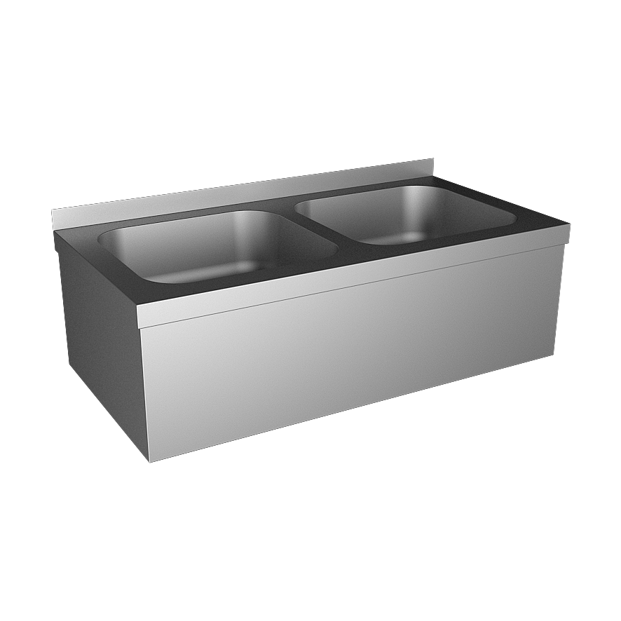Stainless steel wall hung double sink with apron and with SLU 10B, 6 V