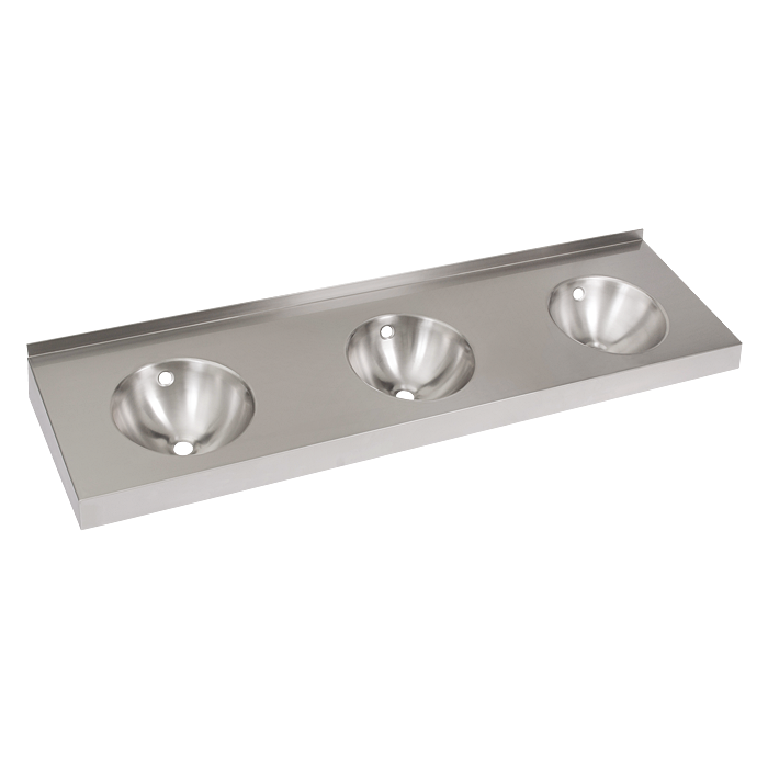 - SLUN 20 - falra szerelhető rozsdamentes acél hármas mosdó túlfolyó készlettel, 1800 mm hosszúságban