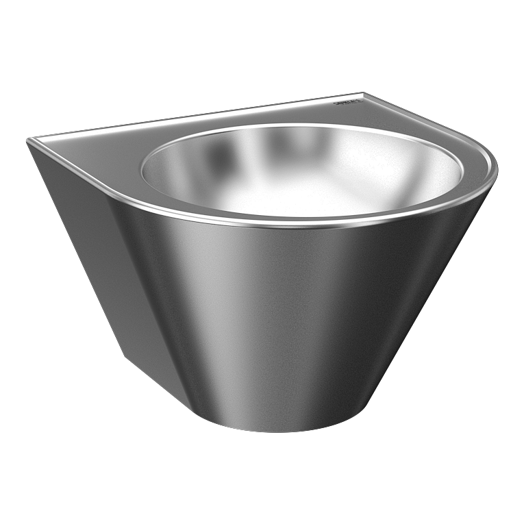 Vandalizmusálló rozsdamentes acél, falra szerelhető kúpos mosdó, Ø 320 mm