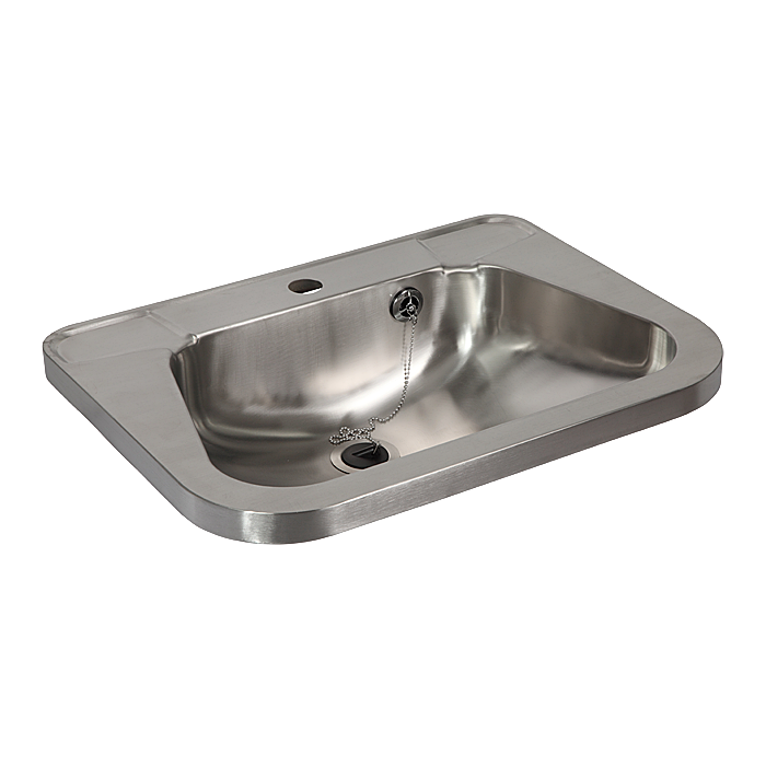 SLUN 26 - Cikkszám: 93260 - rozsdamentes acél mosdó, konzol (2 db), túlfolyó készlet lánccal és dugóval, szifon, szerelőkészlet