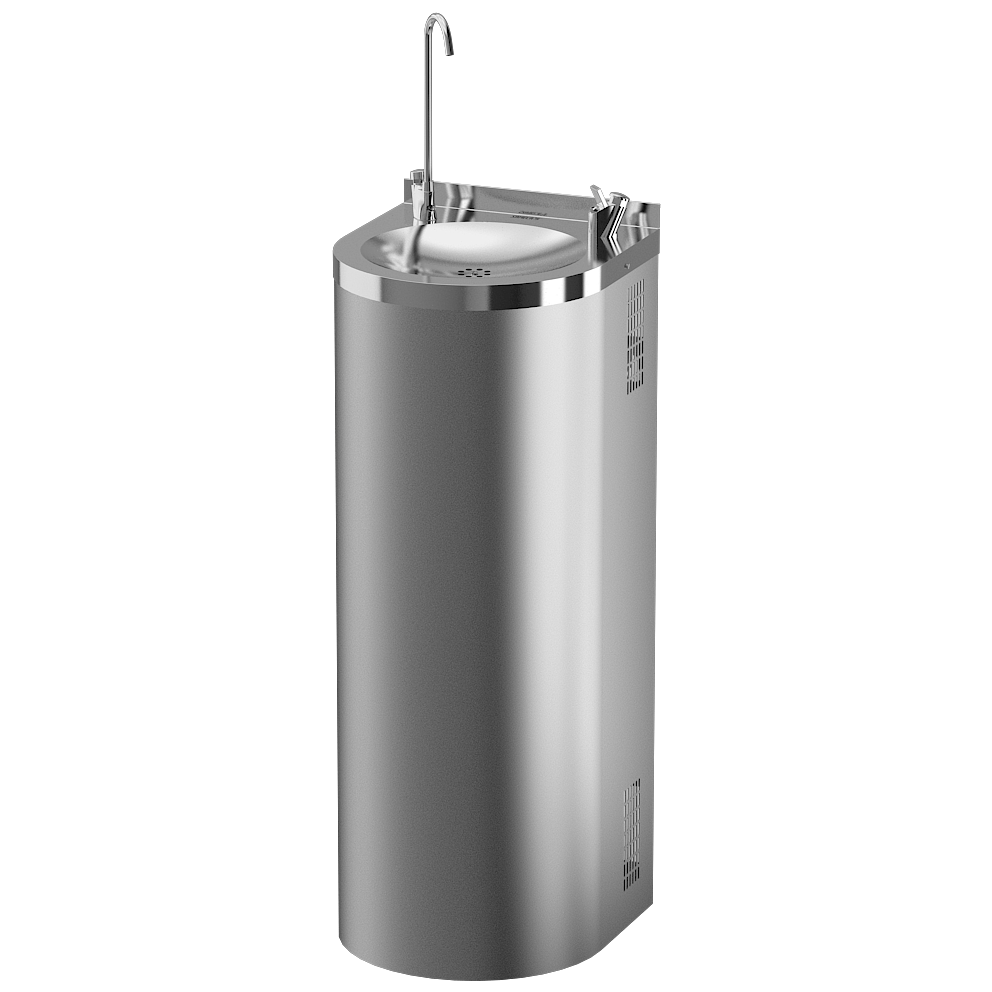 - rozsdamentes acél padlón álló ivókút önzáró ivócsővel és palacktöltővel