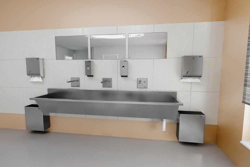 - rozsdamentes acél, falra szerelhető orvosi mosdóvályúk kötény nélkül