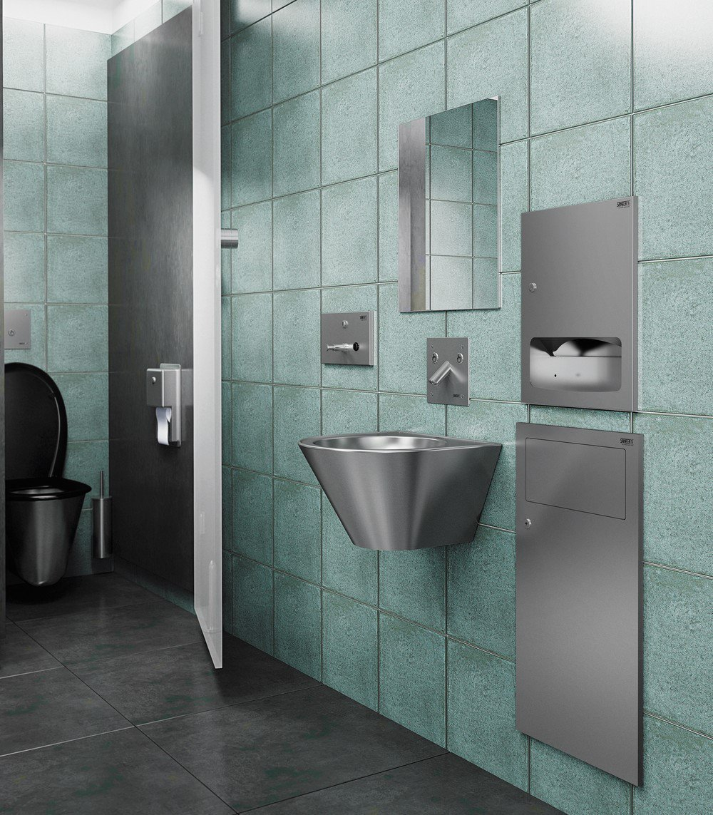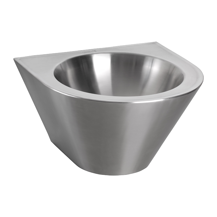 Vandalizmusálló rozsdamentes acél, falra szerelhető kúpos mosdó, Ø 320 mm