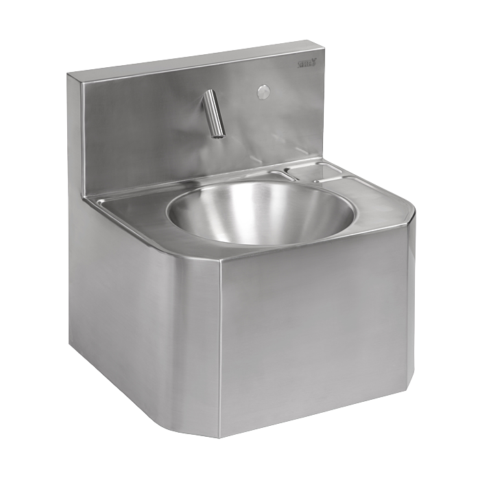 - rozsdamentes acél fali mosdó piezo elektronikával és speciális öngyilkosság-ellenes kifolyóval