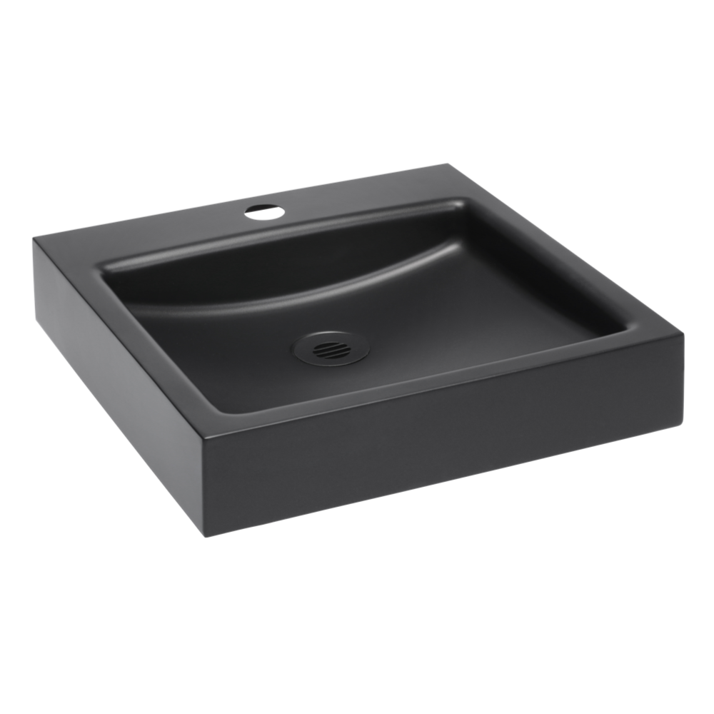 Rozsdamentes acél fali mosdó, fekete matt felület
