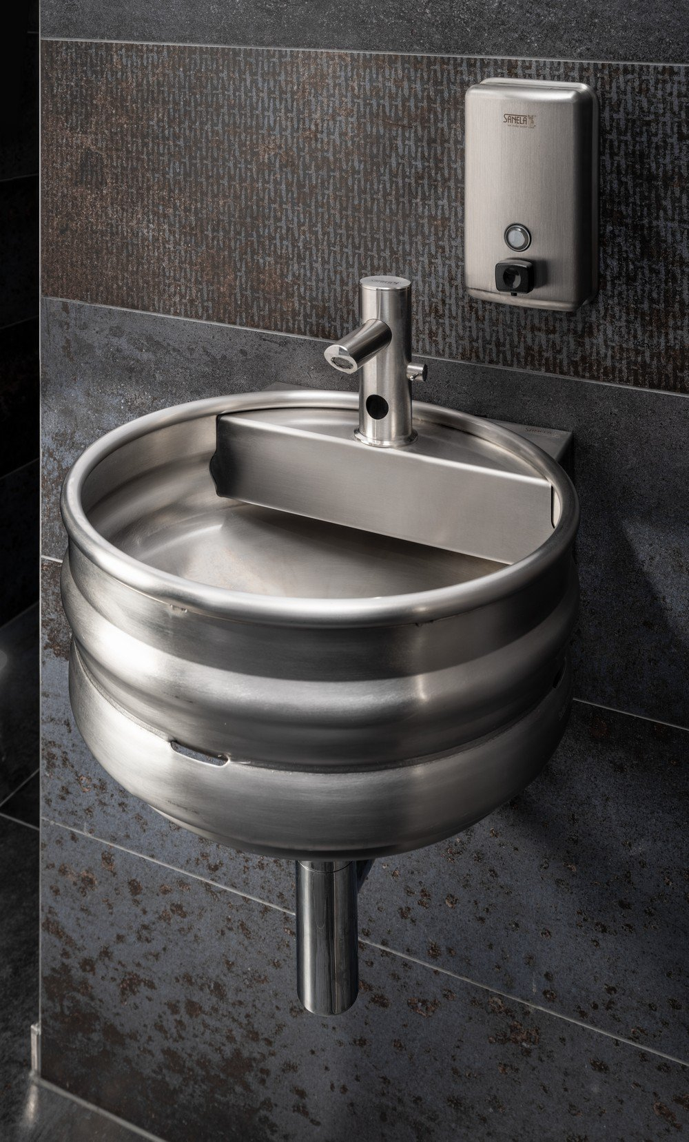 Falra szerelhető rozsdamentes acél KEG mosdókagyló, kefélt felület