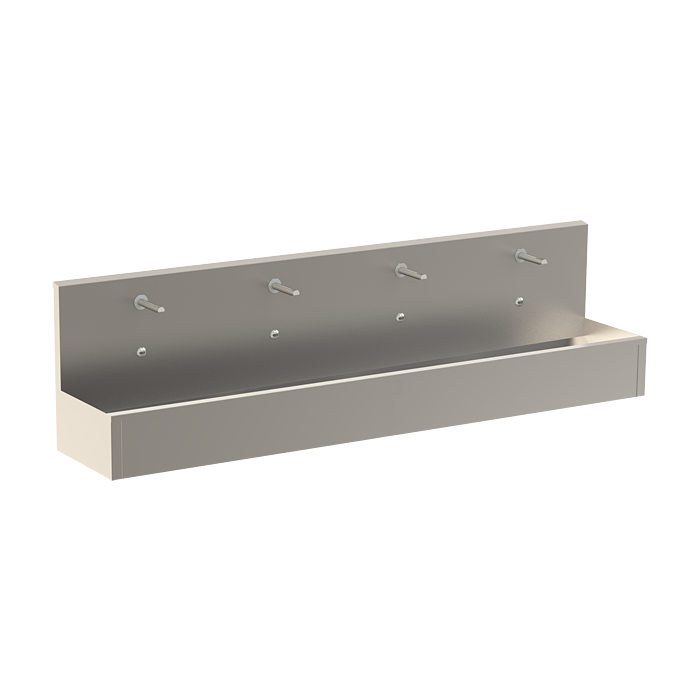 Rozsdamentes acél falra szerelhető vályú integrált elektronikával, termosztatikus szeleppel, 2500 mm hosszúságban, 24 V DC