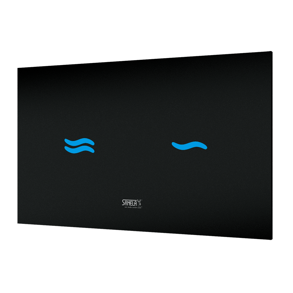 Elektronikus érintős WC-öblítő egység, üveg szín REF 9005 fekete, kék háttérvilágítás, 24 V DC
