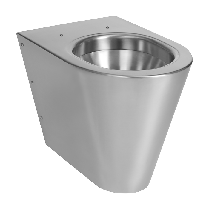 - rozsdamentes acél padlón álló WC, falhoz és padlóhoz rögzítve