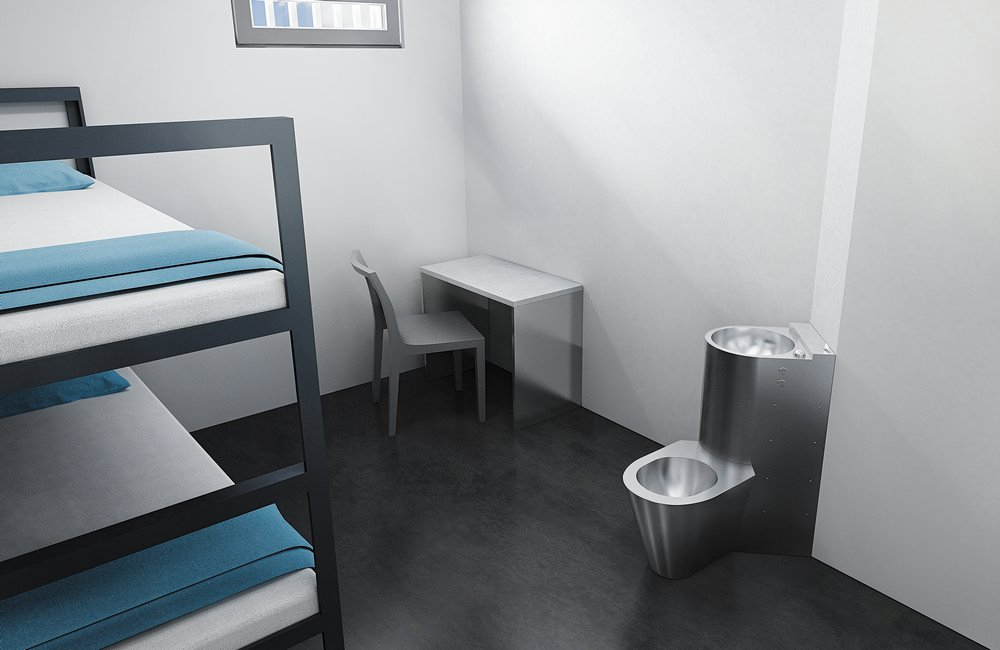 Vandalizmusálló piezo sarok kombinált egység, jobb oldali álló WC-vel