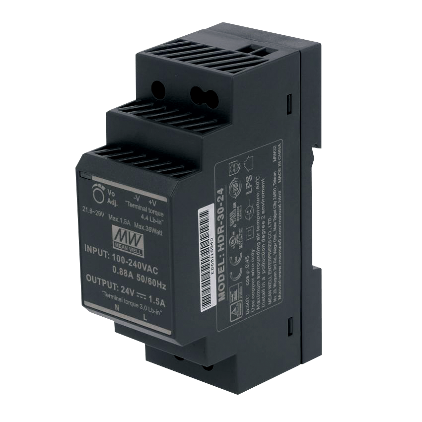 Külső tápegység 24 V DC DIN sínre szereléshez kapcsolószekrényben, 30 W