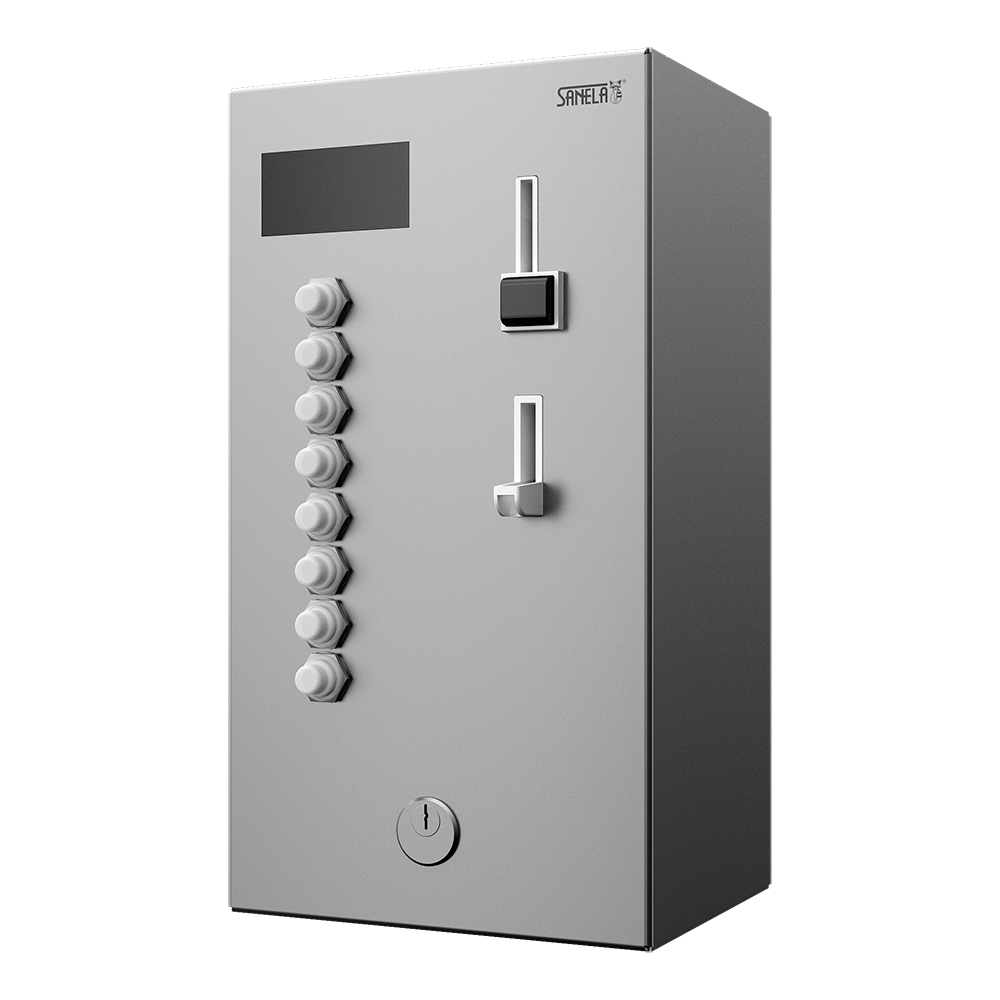 SLZA 02LM - 88027 sz. szállítás - rozsdamentes acél érmeautomata elektronikával, érmetartóval és érmedobozzal, kulcskészlettel (2 db)