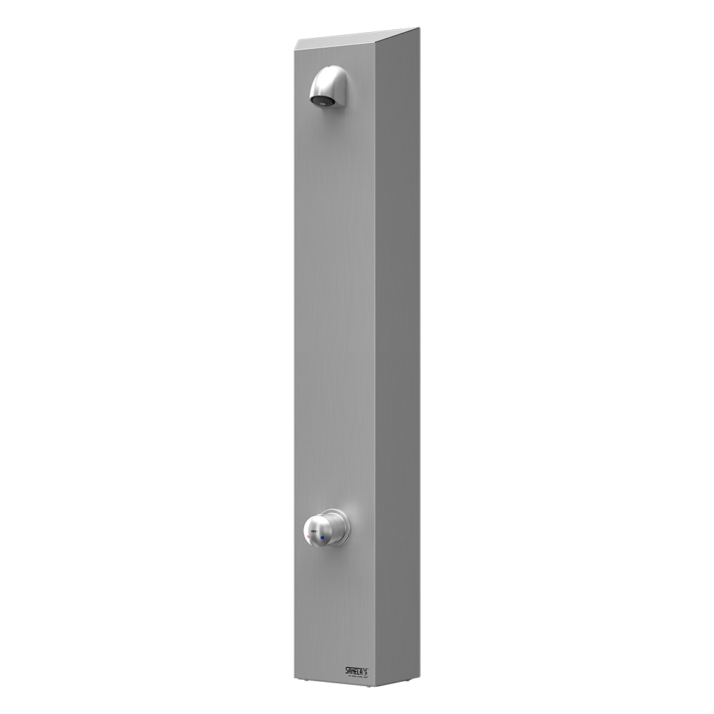 Rozsdamentes acél zuhanypanel piezo gomb nélkül érme- és zsetonidőzítős zuhanyhoz, M indexszel - hideg és meleg vízhez, a hőmérsékletet keverő szabályozza