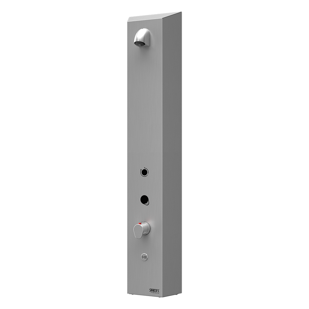 SLZA 32T - 89320 sz. szállítás - rozsdamentes acél zuhanypanel elektronikával és zsetonhoz tartozó kreditolvasóval, állítható vízsugarú zuhanyfej, elektromágneses szelep (1 db), termosztatikus keverő, csatlakozó tömlők, sarokszelep szűrővel és visszacsapó szeleppel (2 db)