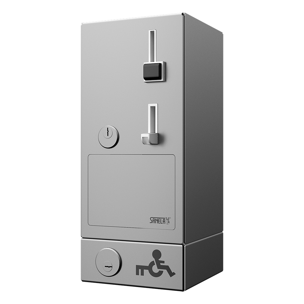SLZA 40V - Cikkszám: 88404 - rozsdamentes acél érmeautomata elektronikával, érmetartóval és érmés dobozzal, eurokey, kulcskészlet (2 db), SLD 05 távirányító