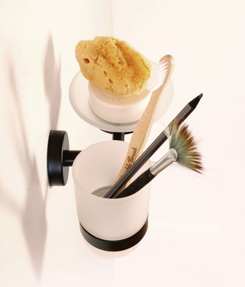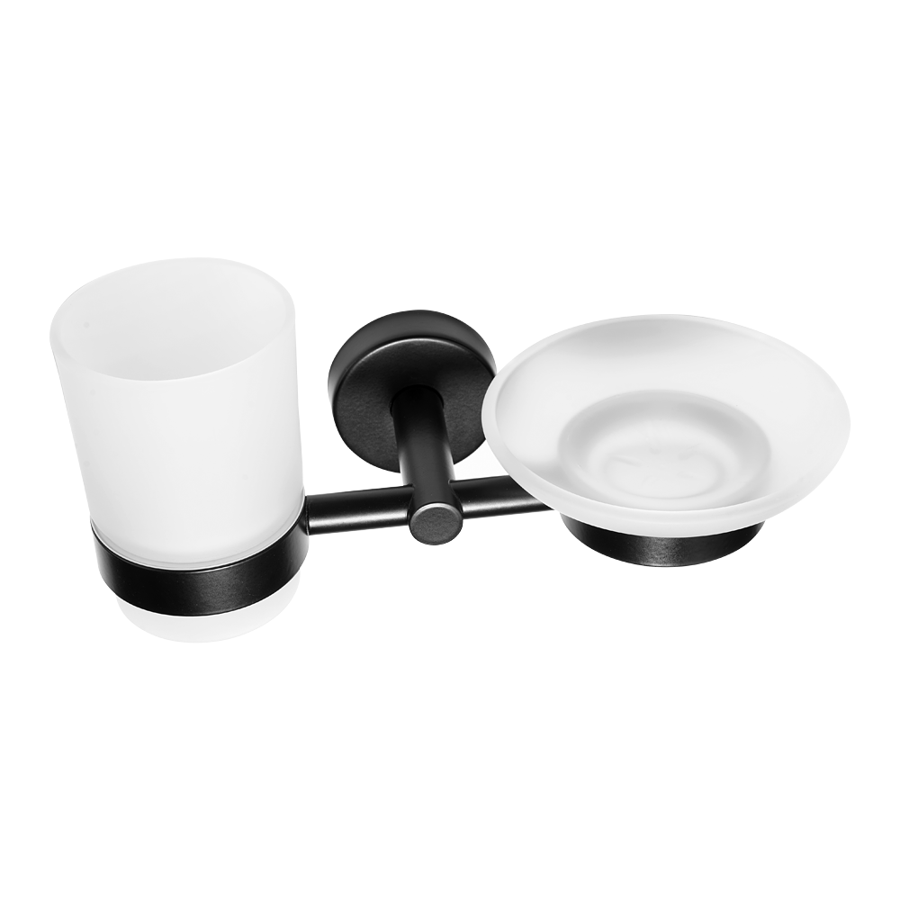 Rozsdamentes acél pohár- és szappantartó, fekete matt felület
