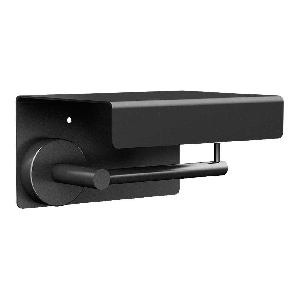 Rozsdamentes acél WC-papír tartó polccal, fekete matt felület