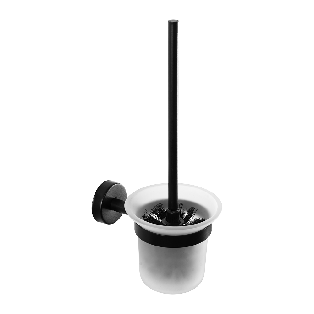 Rozsdamentes acél WC-kefe üveggel, fekete matt kivitelben