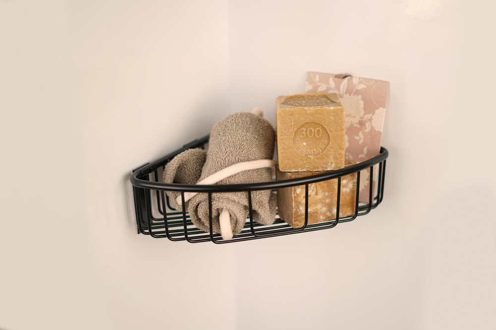 Rozsdamentes acél sarokpolc, fekete matt felület