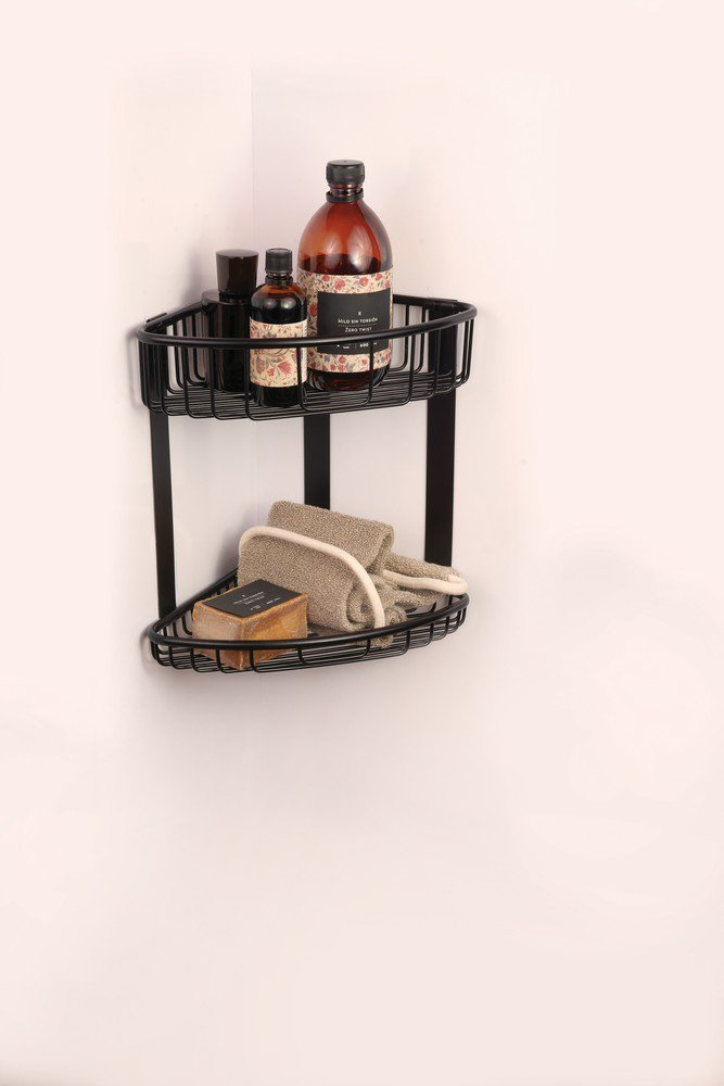 Rozsdamentes acél dupla sarokpolc, fekete matt felület