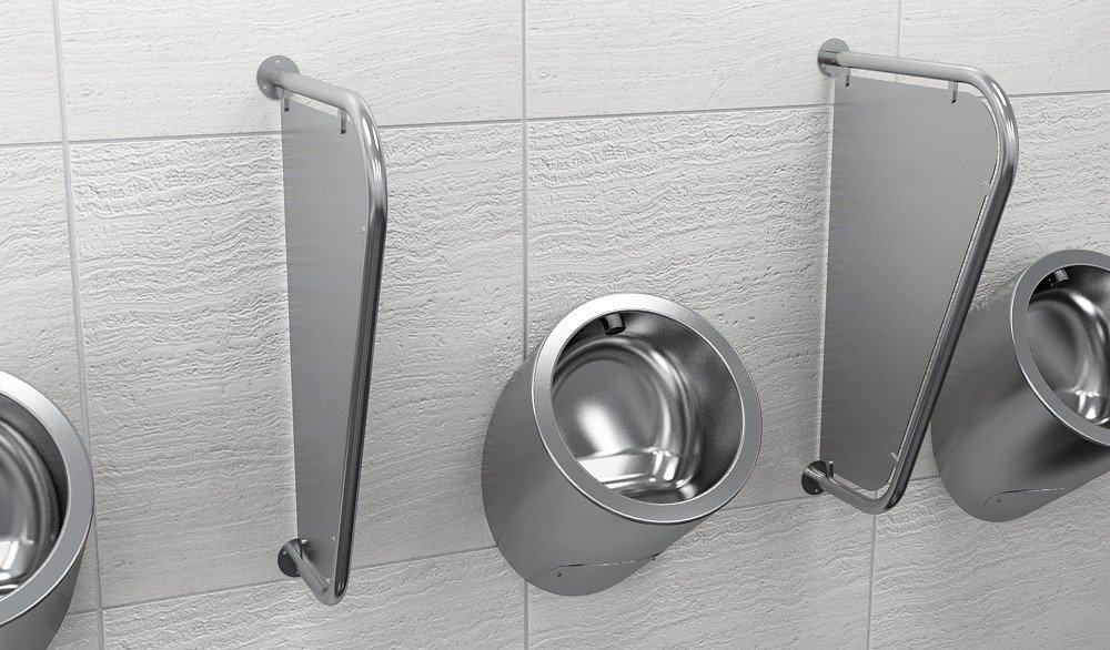 Rozsdamentes acél elválasztó függöny piszoárok között