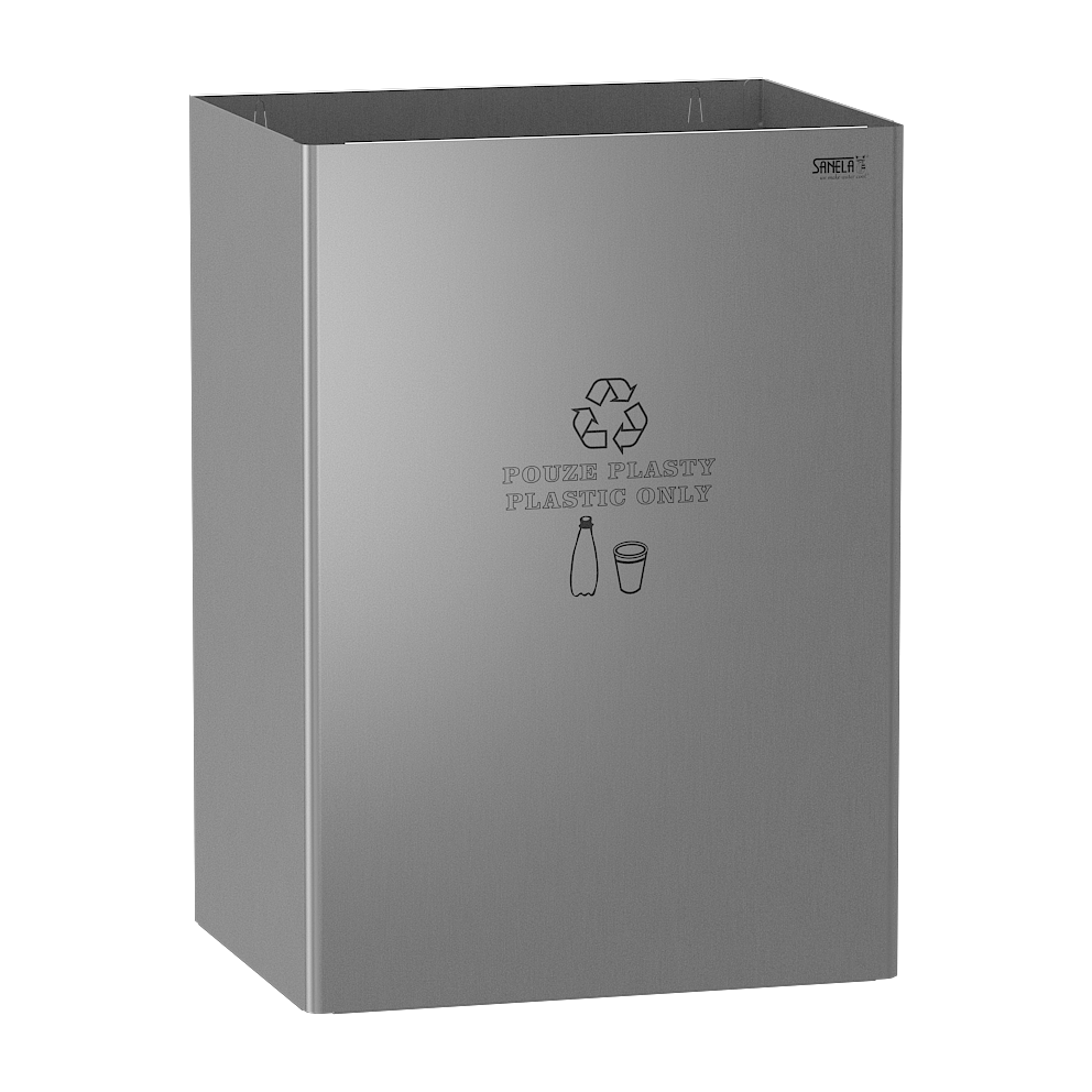 SLKN 49AA - Cikkszám: 85490 - Rozsdamentes acél hulladékgyűjtő, felirat: CSAK MŰANYAG