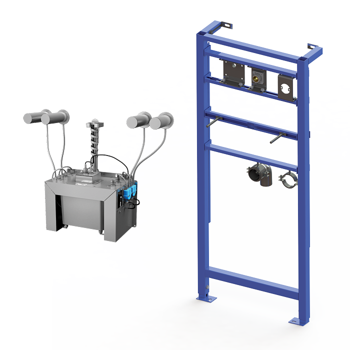 SLZN 83ER4 - Cikkszám: 85814 - rozsdamentes acél kifolyó elektronikával (4 db), rögzítőlemez, bemeneti tömlők és kábelek 80 cm védőcsőben, központi szappanadagoló perisztaltikus szivattyúkkal folyékony szappanhoz és 6 l szappantartály, SLR 24 szerelőkeret (4 db), SLZ 01Y tápegység, SLD 03 távirányító