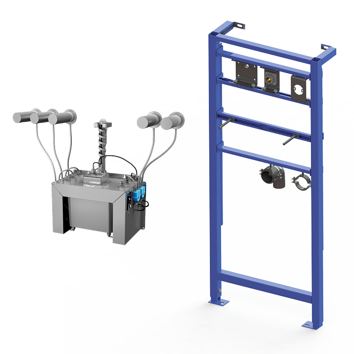 SLZN 83ER5 - Cikkszám: 85815 - rozsdamentes acél kifolyó elektronikával (5 db), rögzítőlemez, bemeneti tömlők és kábelek 80 cm védőcsőben, központi szappanadagoló perisztaltikus szivattyúkkal folyékony szappanhoz és 6 l szappantartály, SLR 24 szerelőkeret (5 db), SLZ 01Y tápegység, SLD 03 távirányító