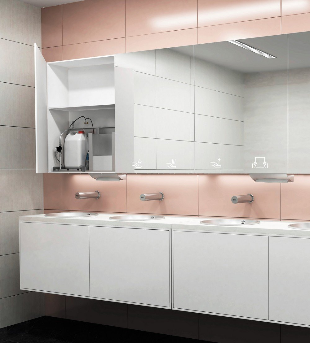 - automata, falra szerelhető szappanadagoló tükör mögött