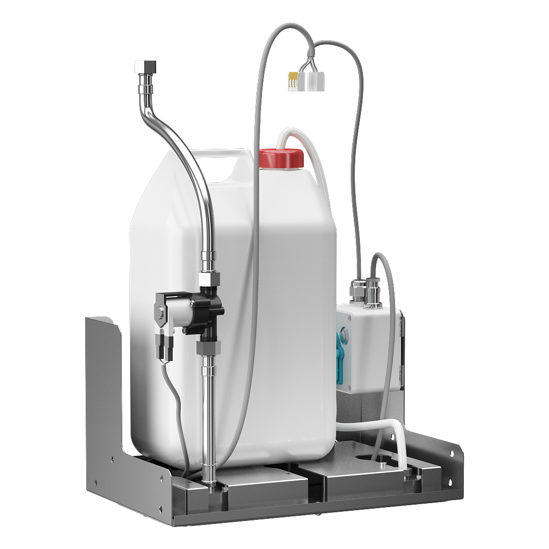 SLZN 84F - Cikkszám: 85842 - rozsdamentes acél rögzítő tartó kifolyóval, szappanadagoló és elektronika, mágnesszelep, csatlakozó tömlők, szűrős sarokszelep, bemeneti tömlők, folyékony szappanhoz szivattyú, 5 l-es szappantartály