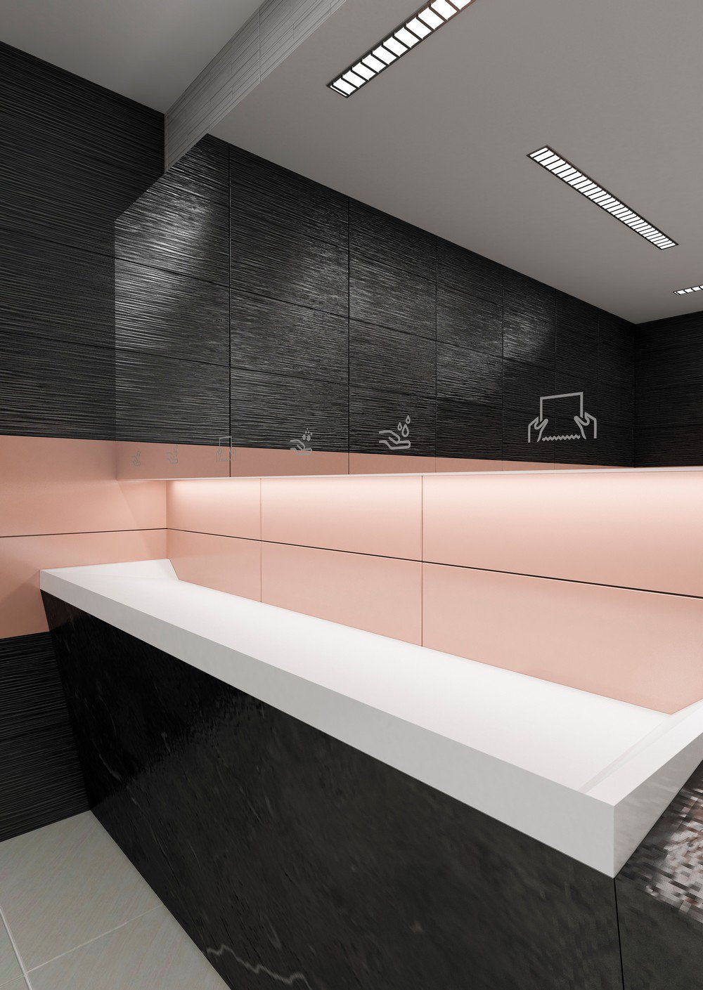 - egy adag szappan adagolódik, amikor a kezek az aktív tartományban vannak a tükör alatt (állítható 1,3 - 13 s között), alapértelmezett 2,6 s
