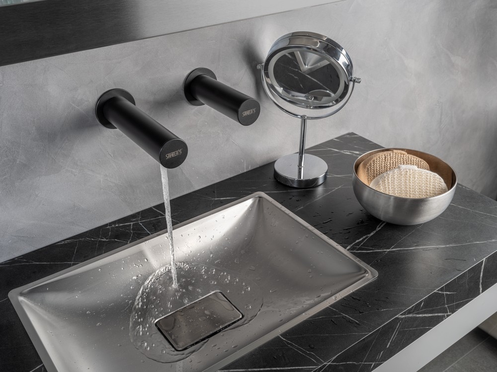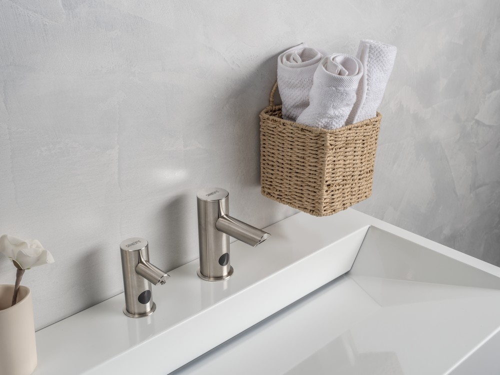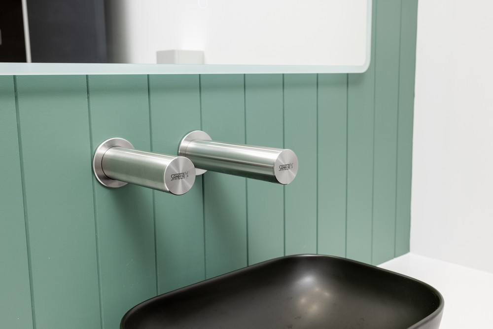 A Sanela a fenntarthatóságra is gondol. A csaptelepek víztakarékos perlátorral vannak felszerelve, amely a vízhozamot 6 literre korlátozza percenként, így a vízfogyasztás csökken anélkül, hogy ez a használati komfort rovására menne. Az adagolók pedig minimalizálják a szappanfogyasztást, ami hatékonyabb tisztítószer-felhasználást eredményez.