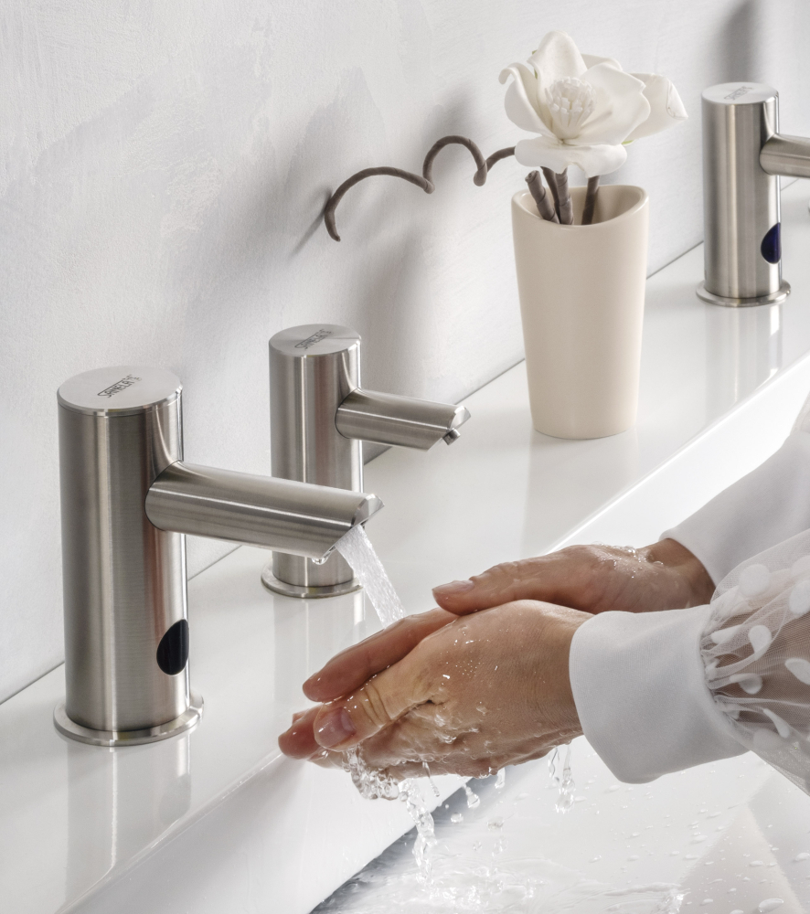A csaptelepek és az adagolók érzékelő elven működnek, így elkerülhető a felülettel való érintkezés. Ennek köszönhetően a használat maximálisan higiénikus és kényelmes. Az automatikus higiéniai öblítés pedig segít megelőzni a baktériumok, például a legionella elszaporodását.